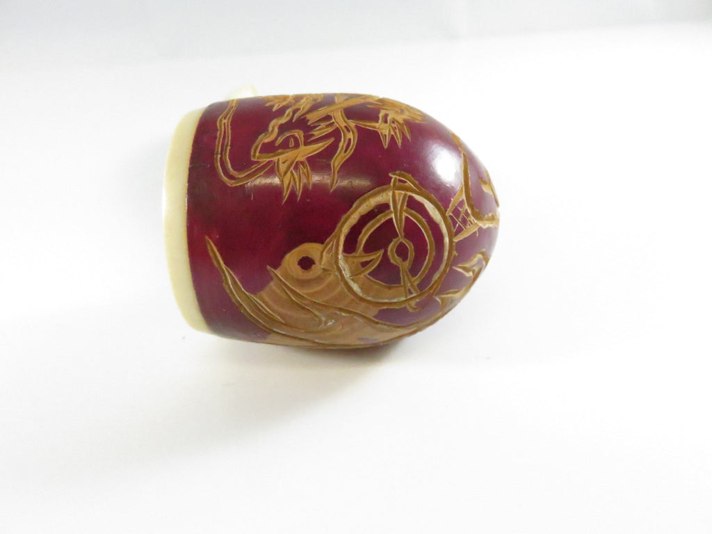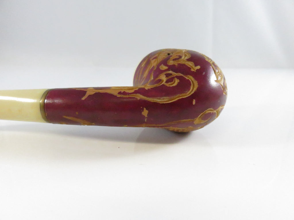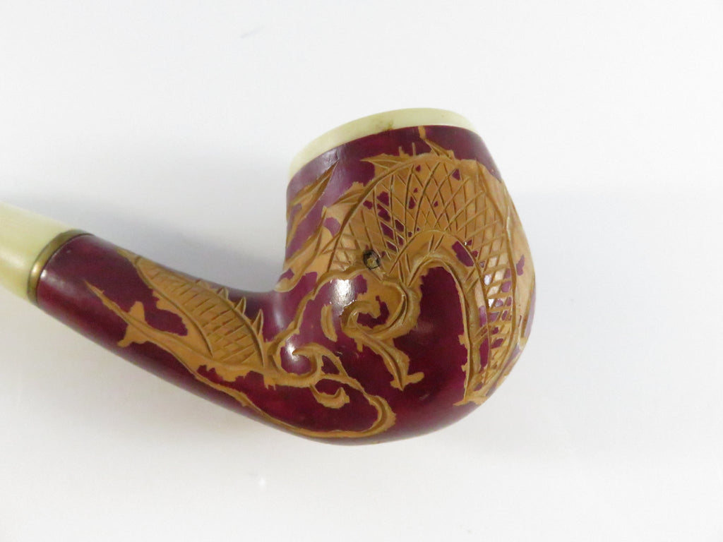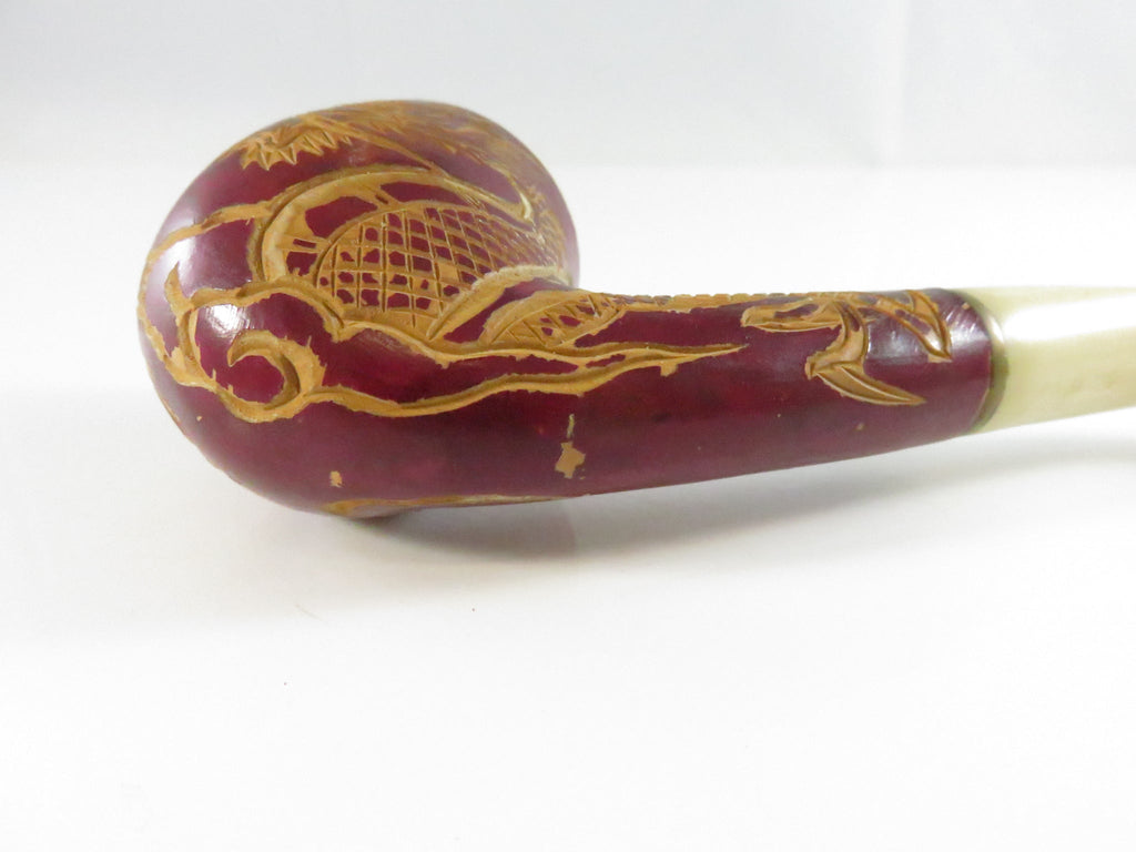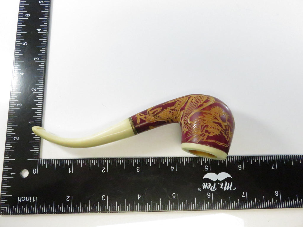 Vintage Carved Dragon Design Smoking Pipe Bakelite Style Stem & Bowl - 5 3/8"