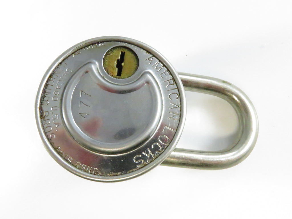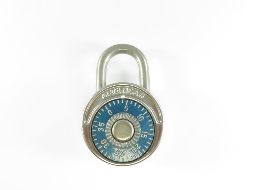 AMERICAN Lock 477 Blue Dial Combination Padlock Mid Century Industrial Security Hardware 3 1/4 Inch