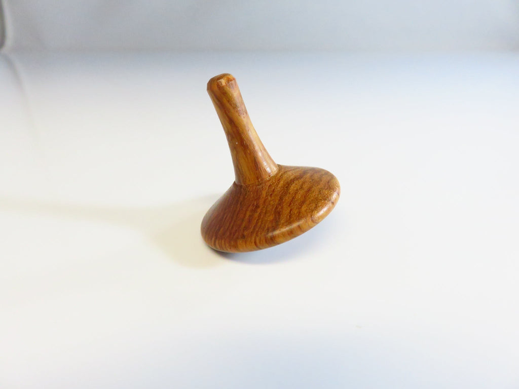 Small Carved Wood Long Stem Spinning Top Toy 1 1/2"