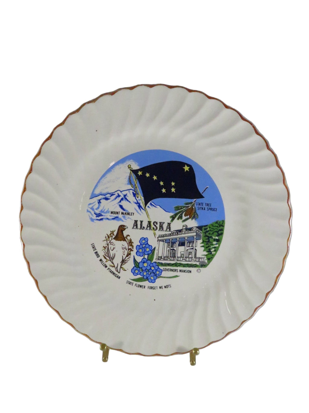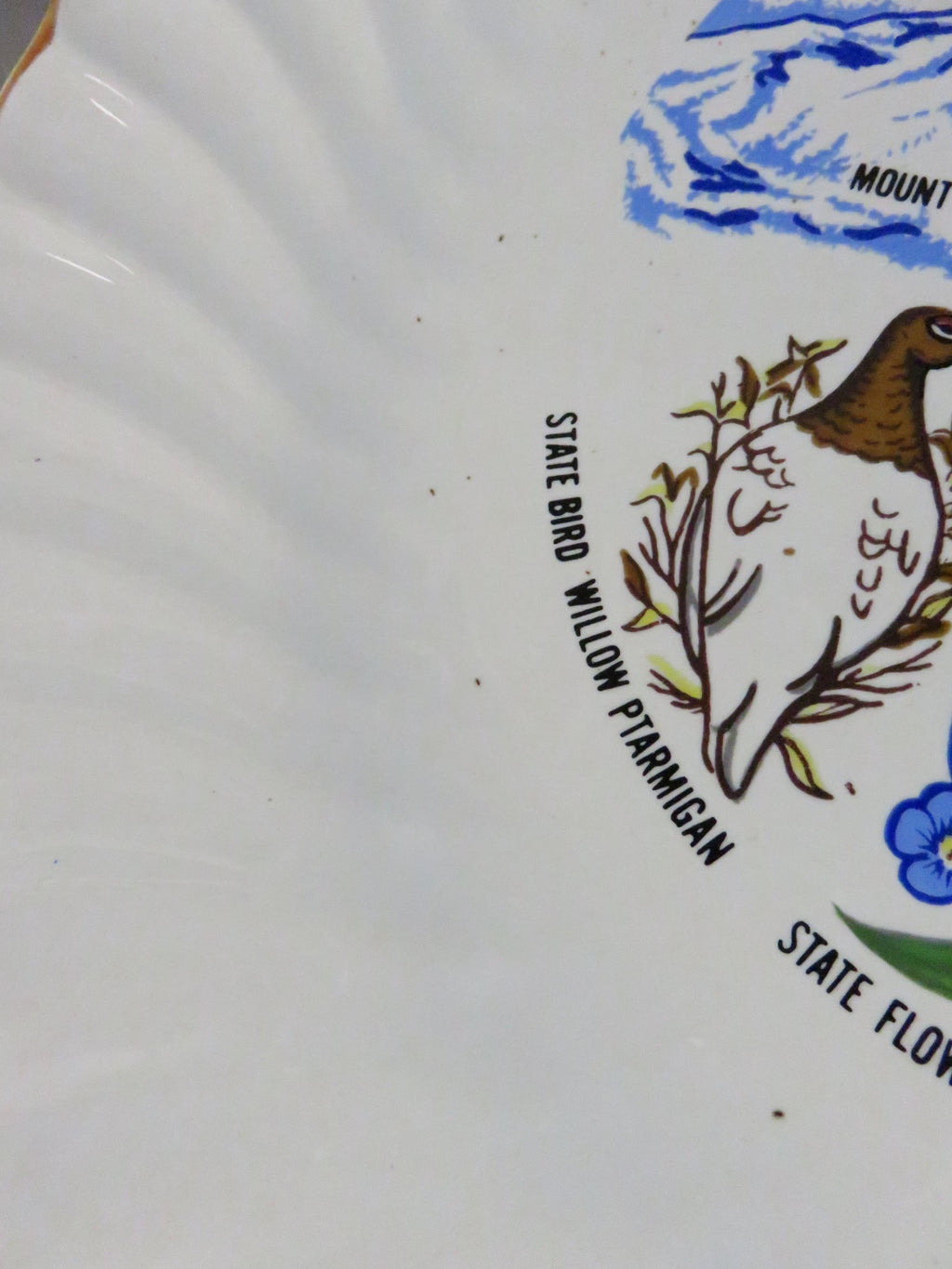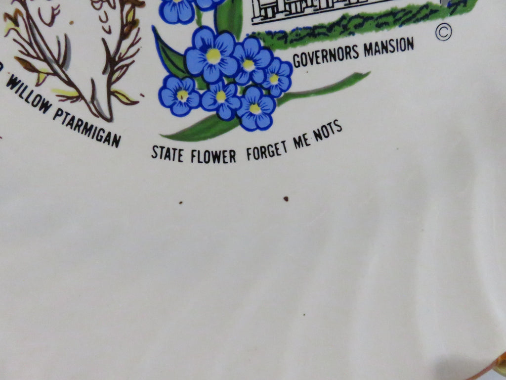 Alaska Souvenir Plate – State Symbols, Governor’s Mansion, Mount McKinley ~10”