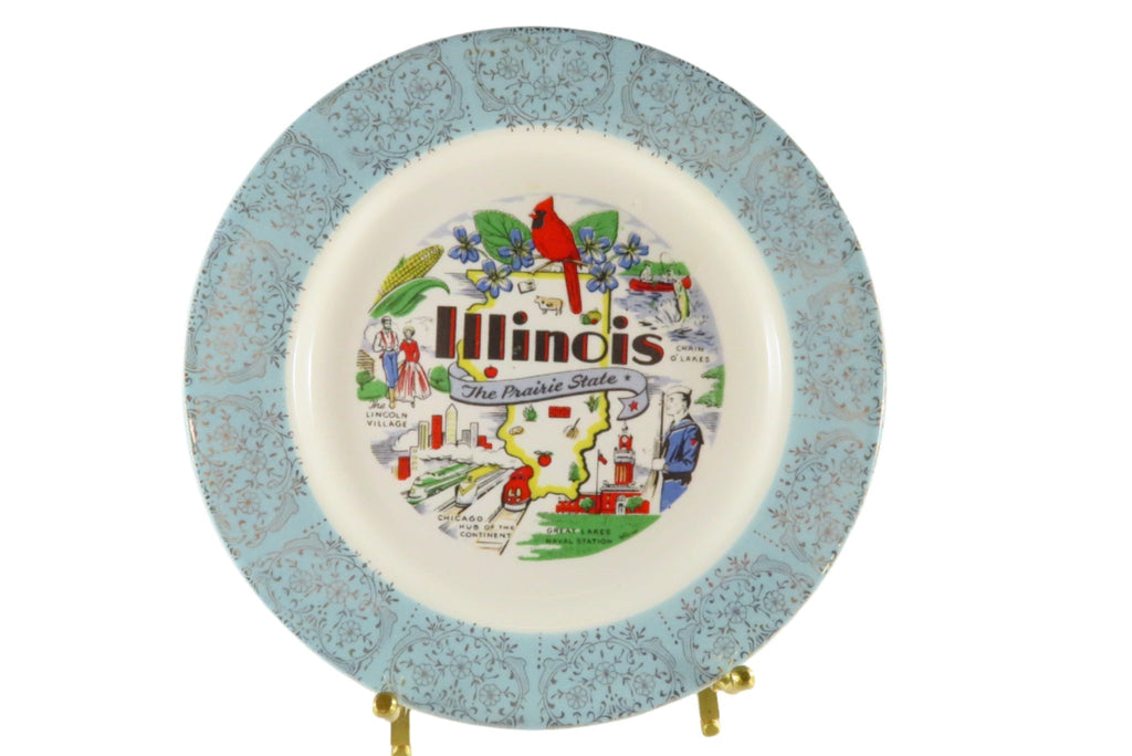 Illinois The Prairie State Travel Souvenir Plate Vintage c1960's