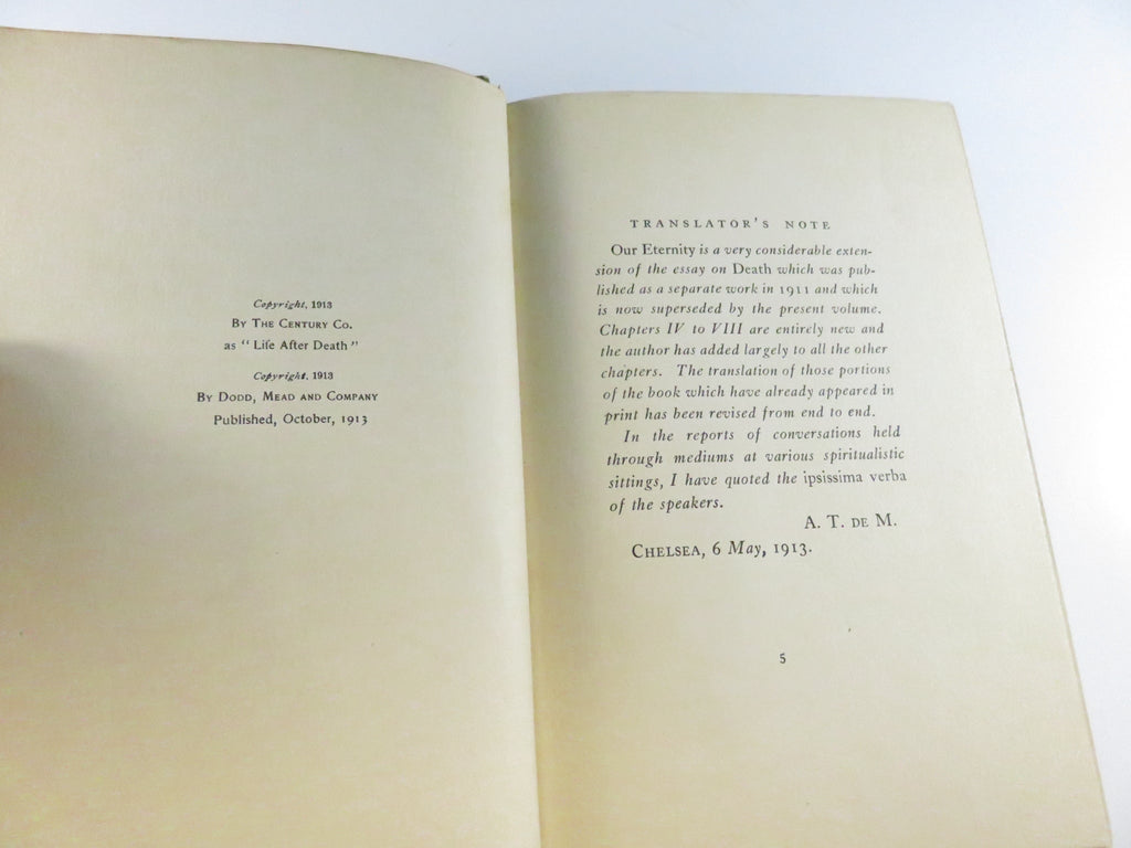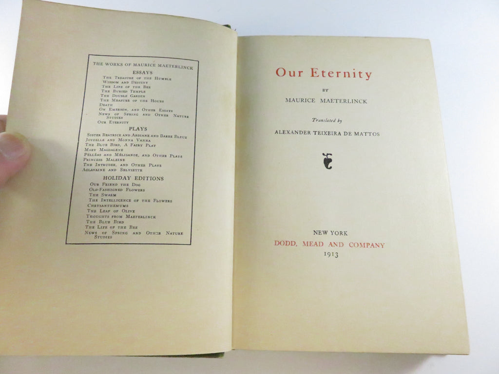 Our Eternity by Maurice Maeterlinck 1913 First Edition Dodd Mead & Co.