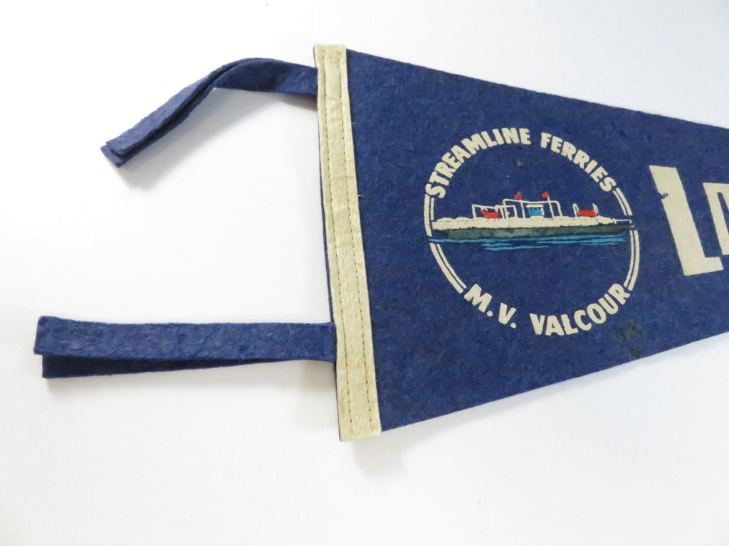 Vintage Streamline Ferries Lake Champlain Felt Pennant – M.V. Valcour – approx. 14 5/8"