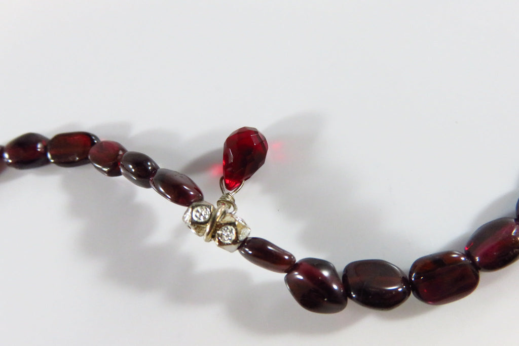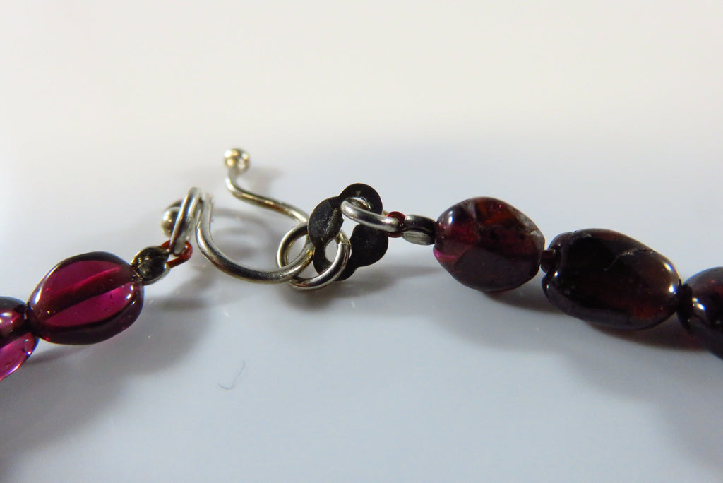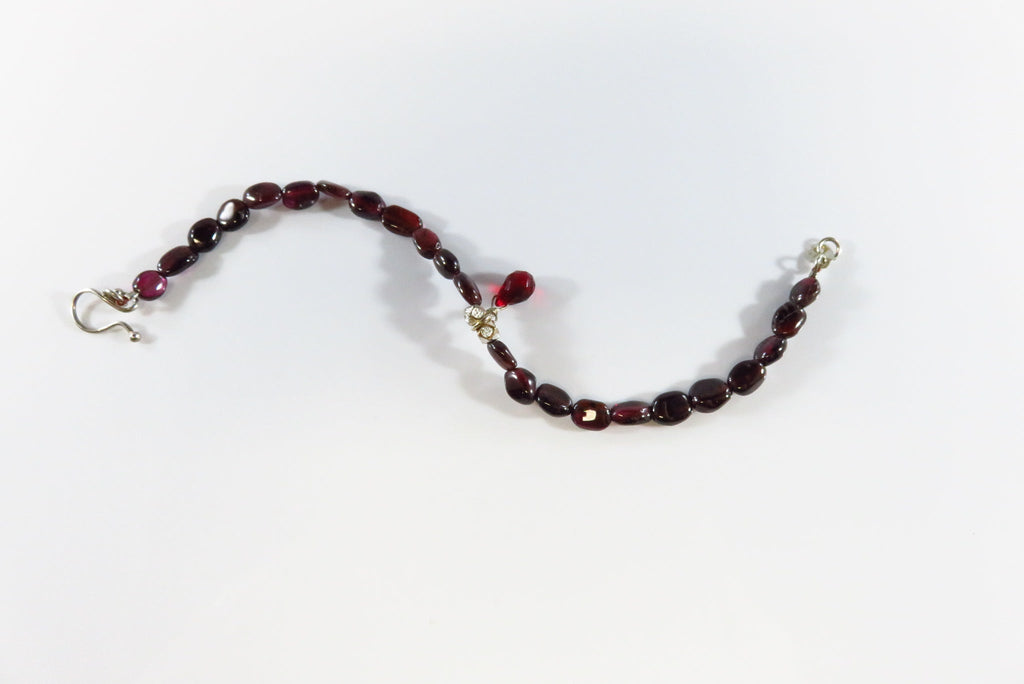 7 1/4" Garnet Glass Beaded Bracelet Sterling Silver Beaded Bracelet