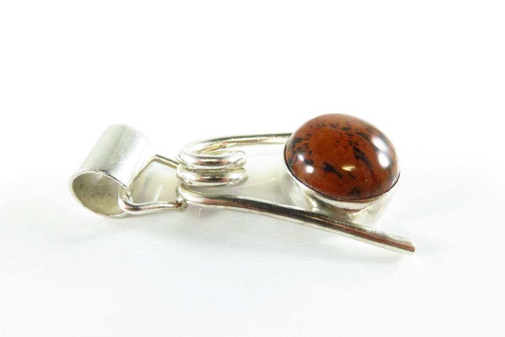 925 Mexico Mahogany Obsidian Jasper Omega Style Sterling Slide Pendant