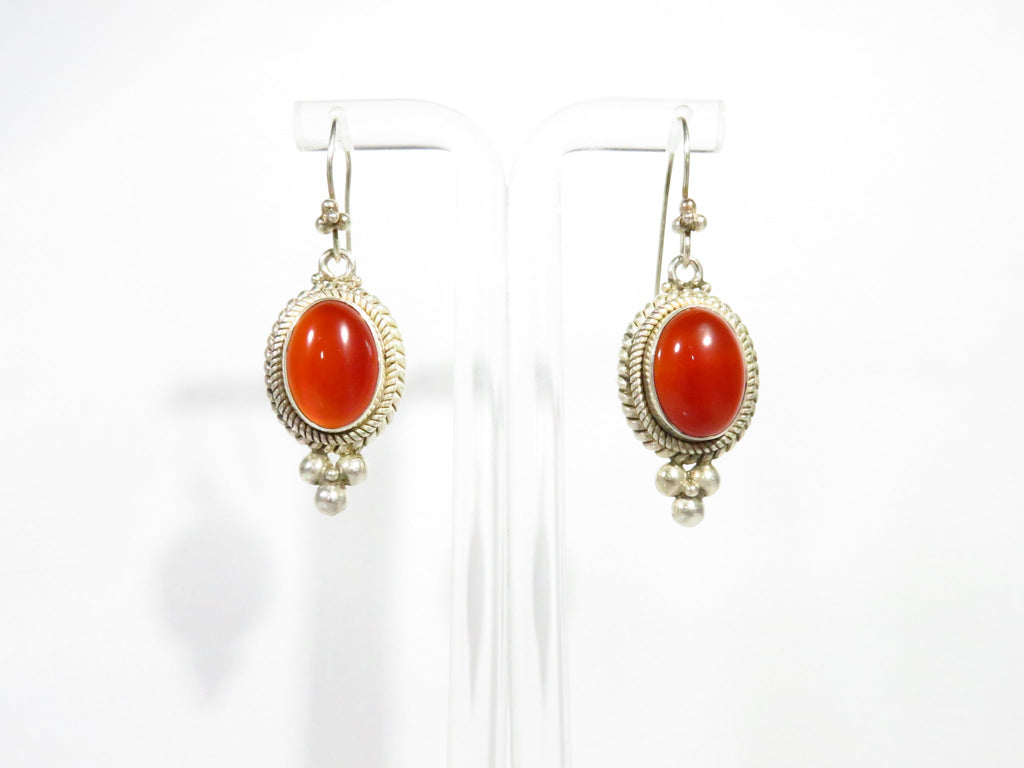 BA Suarti Sterling Indonesia Translucent Carnelian French Wire Dangling Earrings