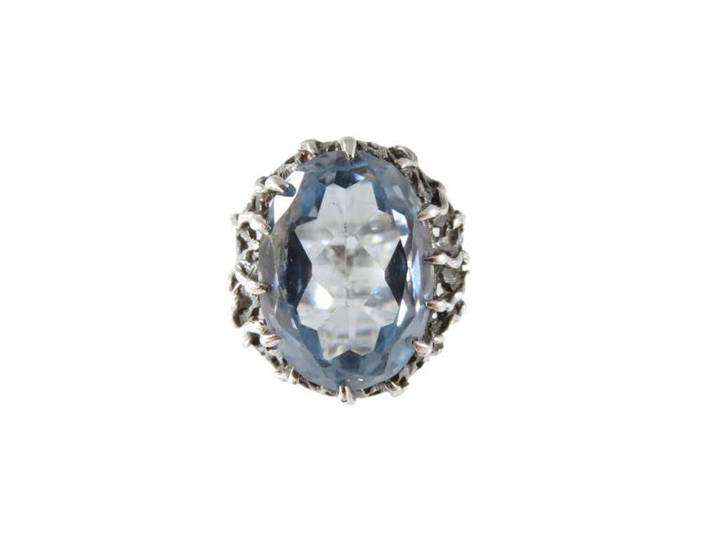 Oval Synthetic Aquamarine Set in Pierced Sterling Silver Band Statement Ring