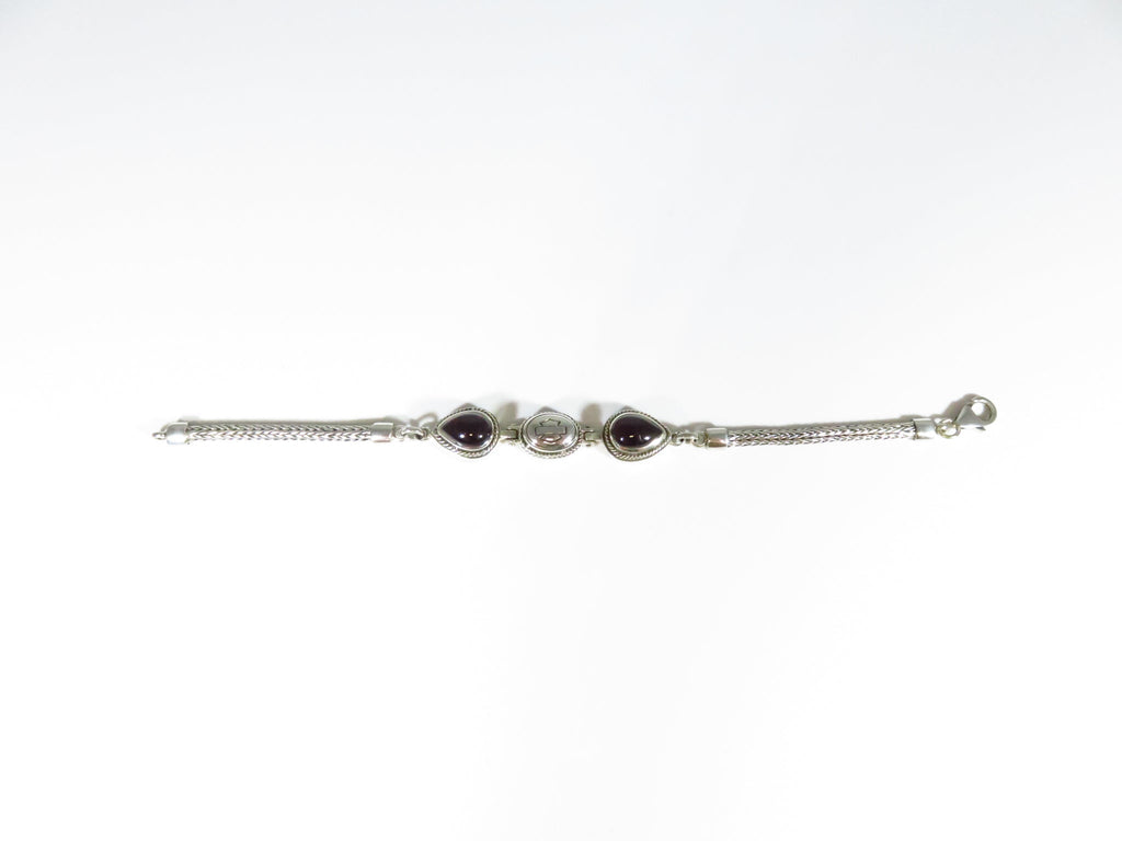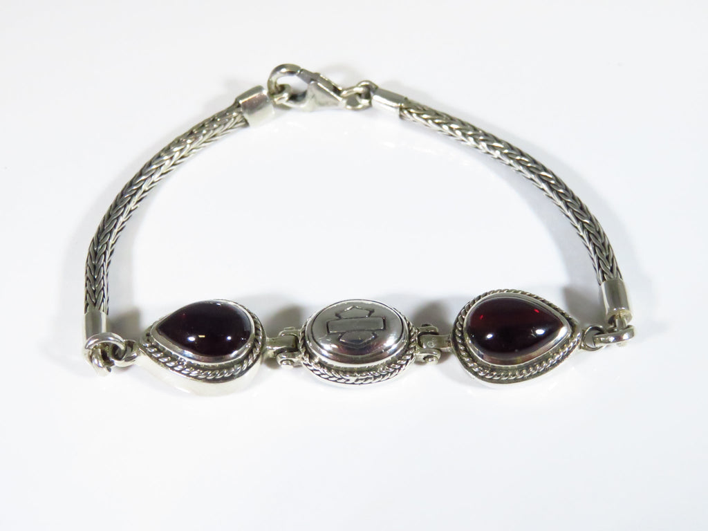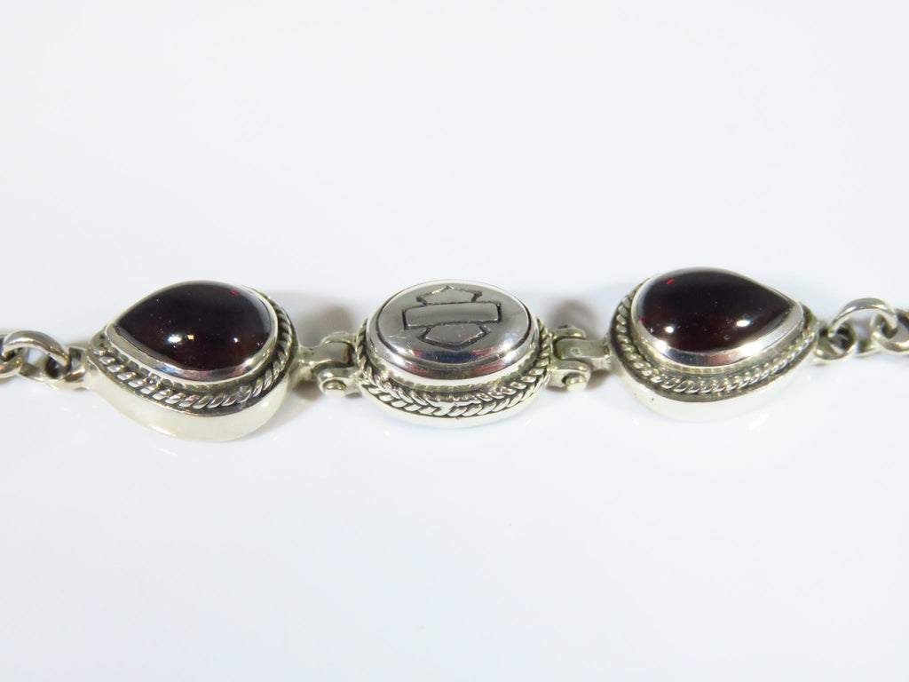 6 3/8" Harley Davidson Sterling Cabochon Garnet Wheat Barley Chain Bracelet