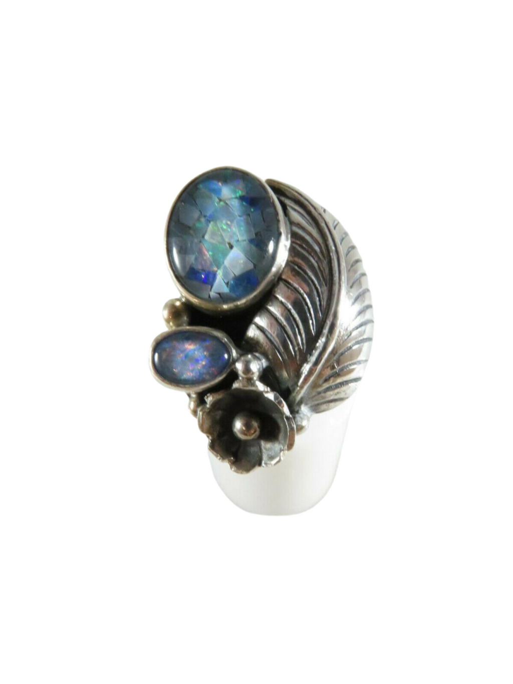 Lovely Opal Doublet Sterling Silver Native American Style Statement Ring Sz 7.25