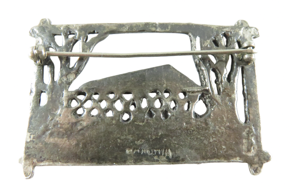 Mid Century 830 Silver Framed Bridge Brooch Signed Scandia Cast Silver Brooch