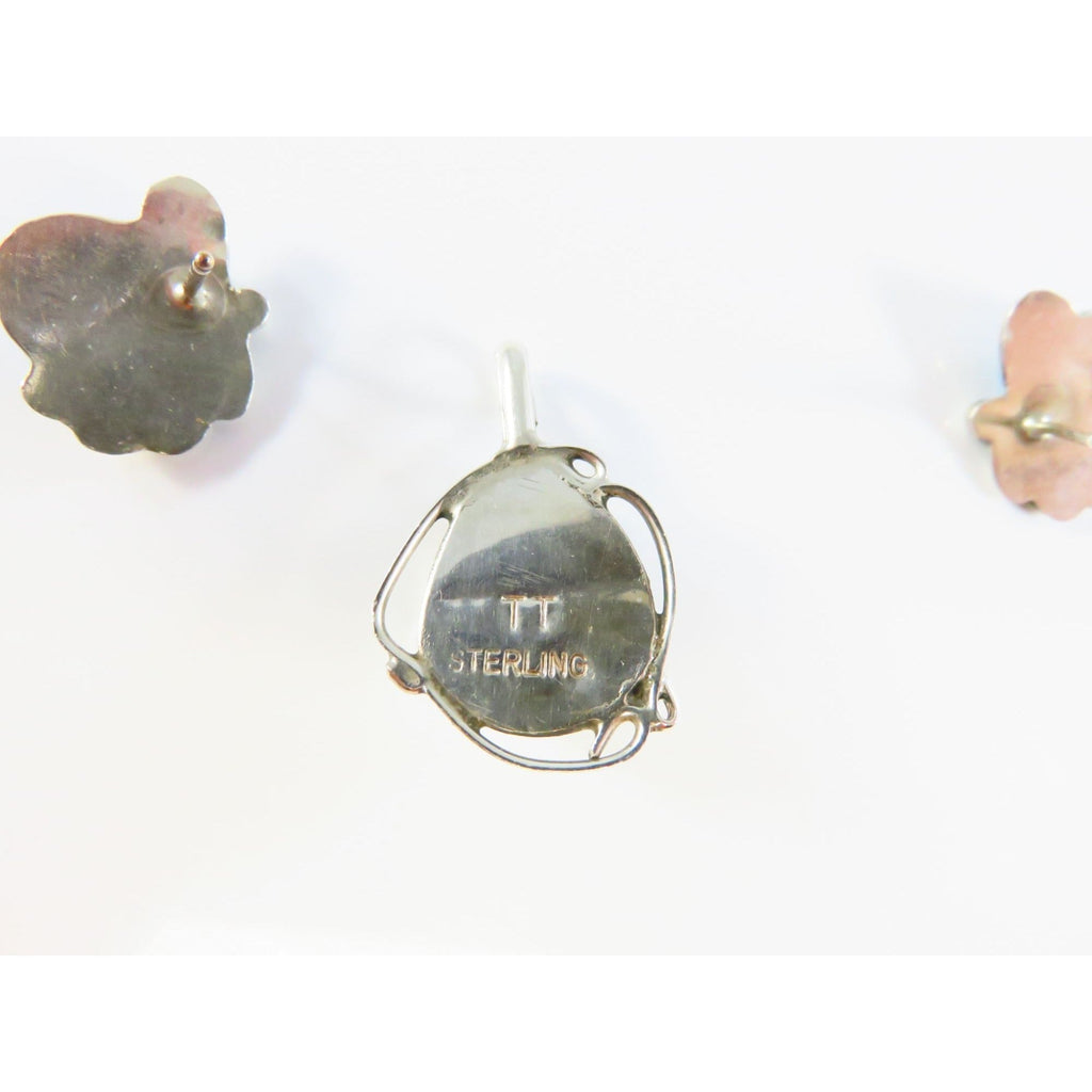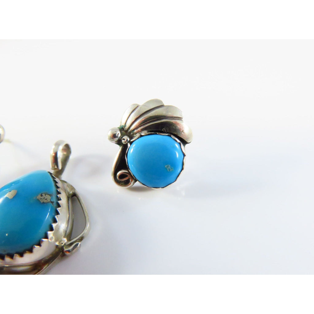 Sterling Silver Navajo Style Turquoise Pendant & Earrings Set Signed