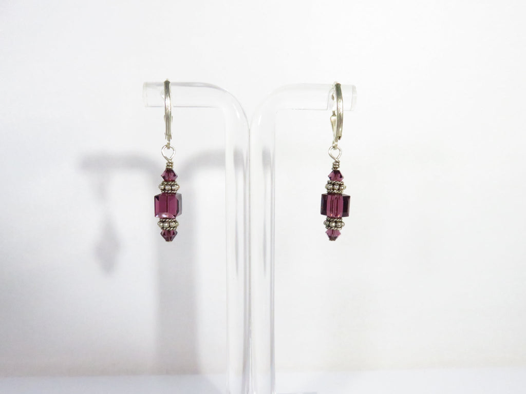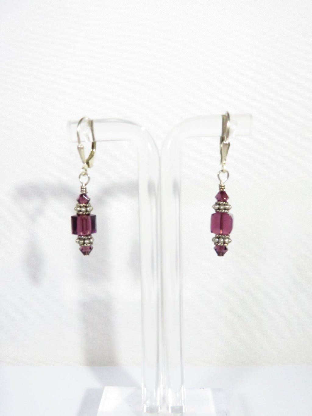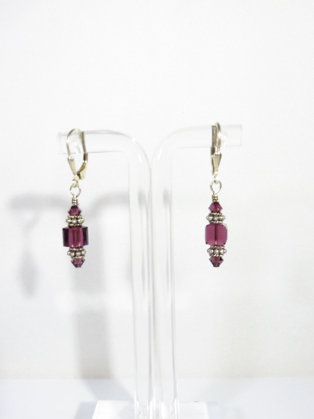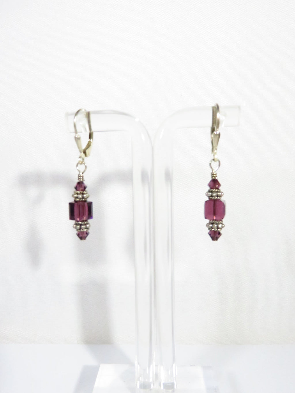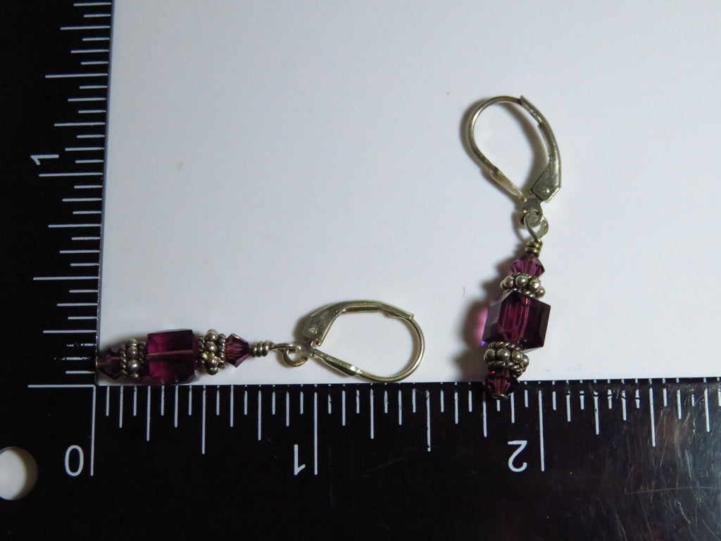 Sterling Silver Purple Crystal Dangling Earrings Lever Back 1 1/2" Drop