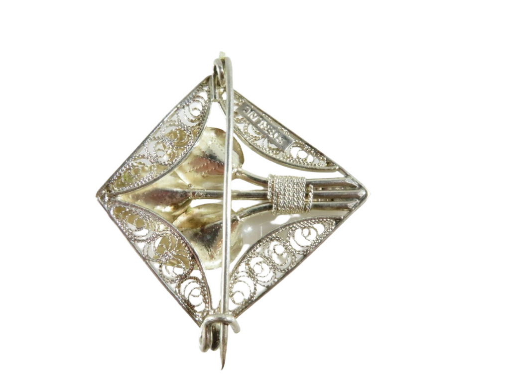 Vintage Diamond Shaped Sterling Silver Pierced Filigree Calla Lily Brooch