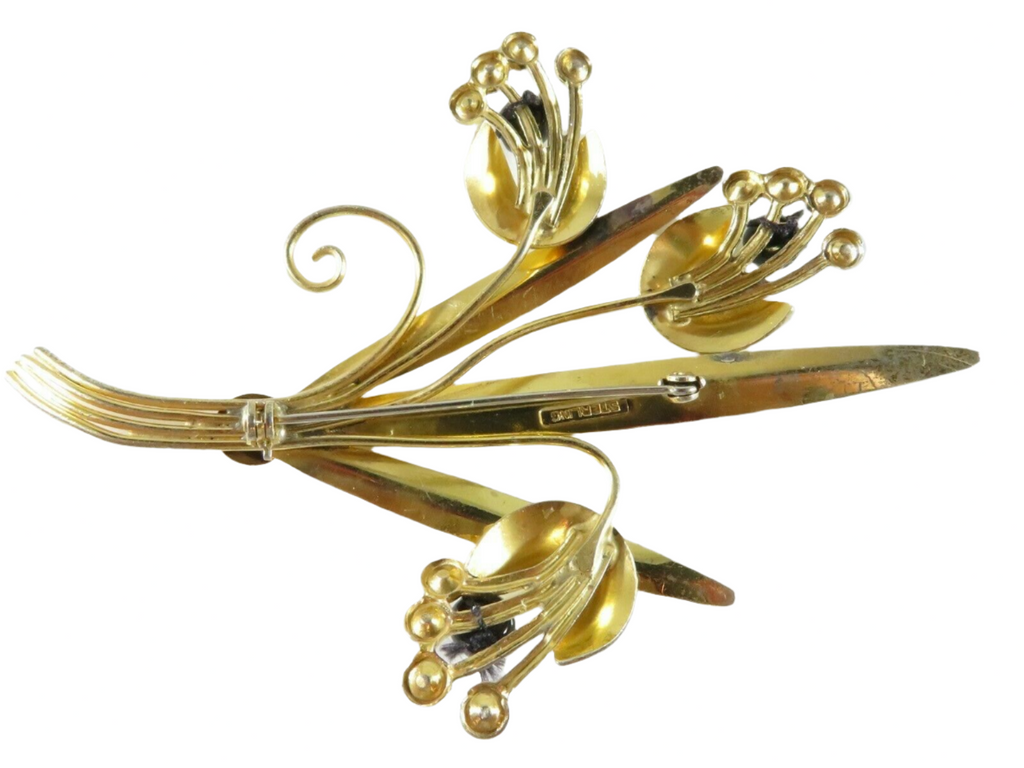 Vintage Gold Vermeil Sterling Silver Black & White Spray Brooch 3 3/4 x 2 3/4