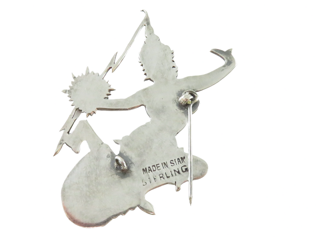 Vintage Siam Sterling Enameled Goddess Mekkala Brooch Pin Circa 1946-48