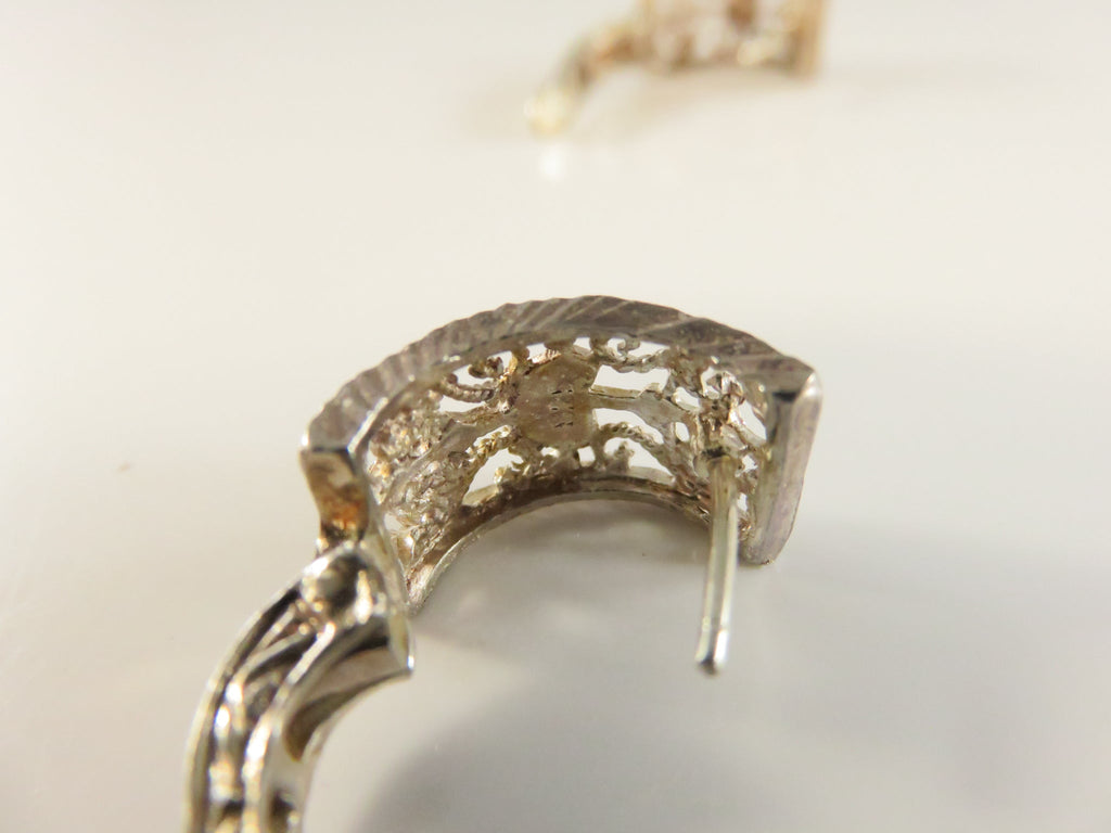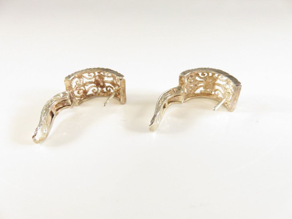 Vintage Sterling Silver Etched Half Hoop Earrings | Lever Back | 925