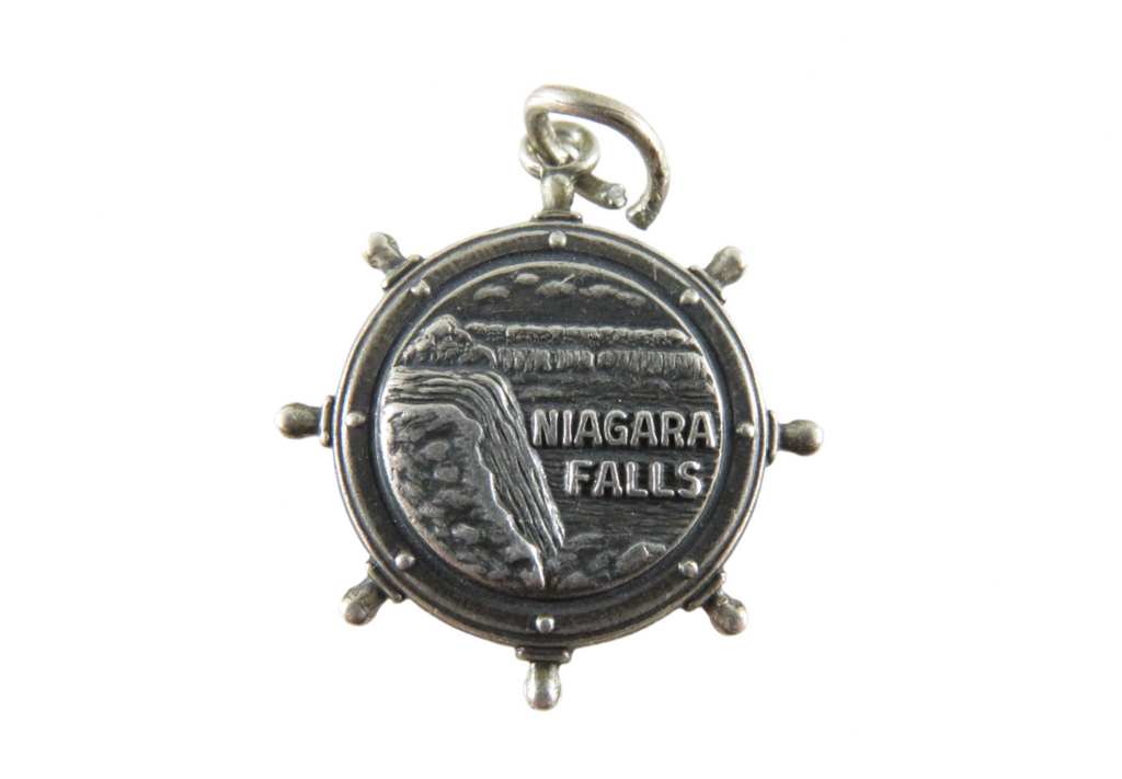 Vintage Sterling Silver Niagara Falls Ships Wheel Travel Charm Pendant