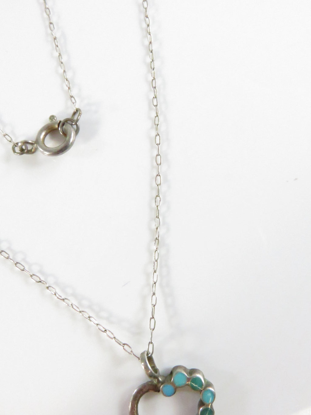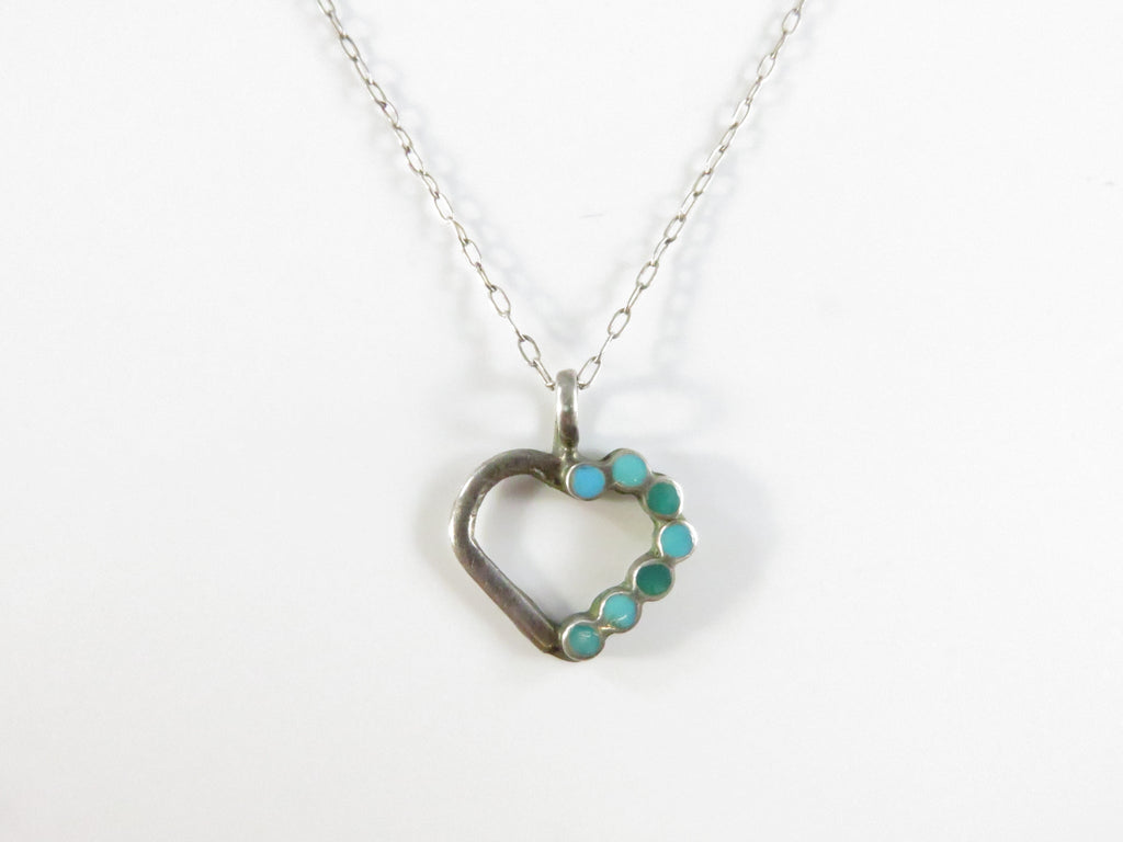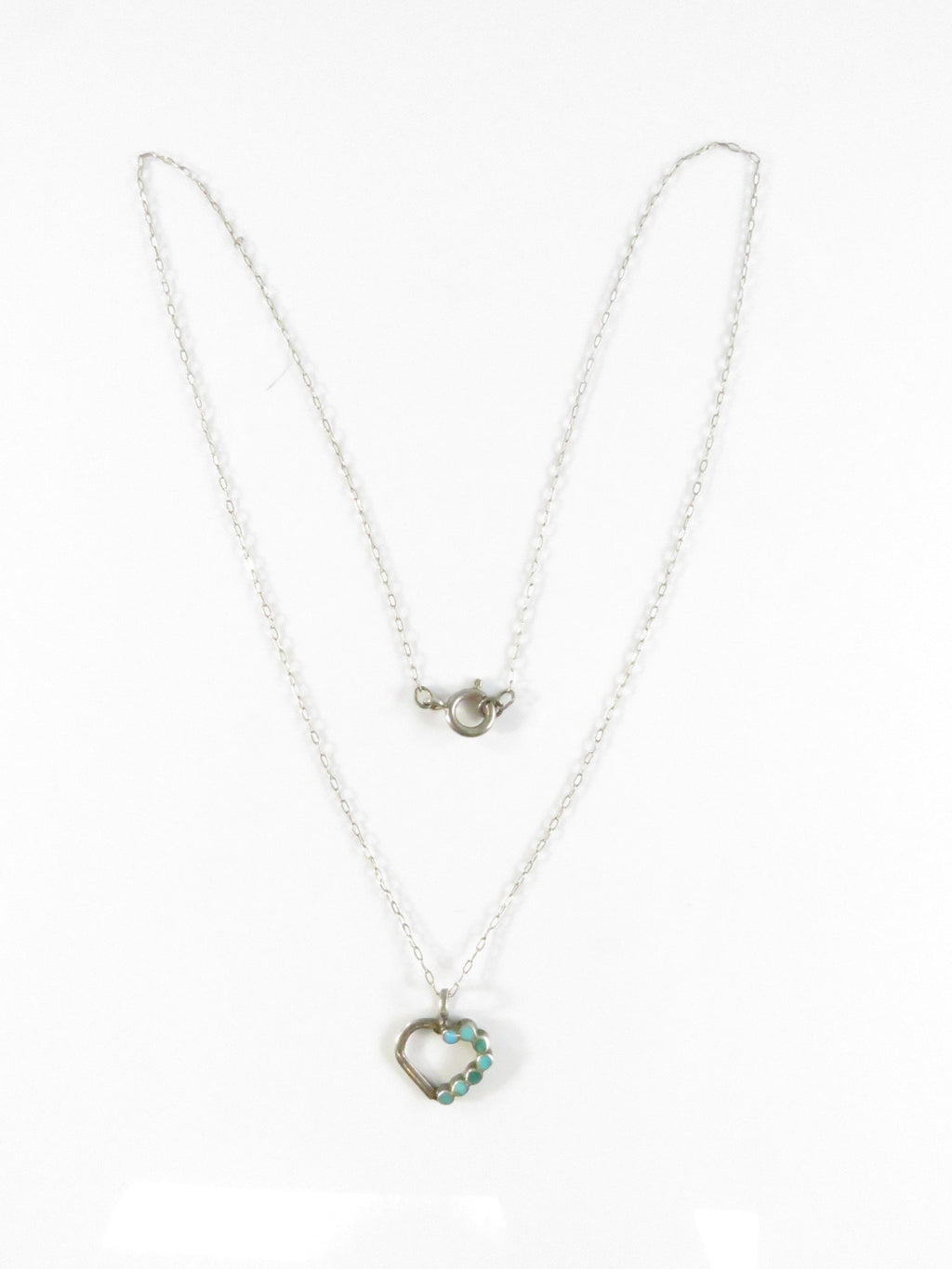 Vintage Turquoise Heart Pendant Necklace on Sterling Cable Chain