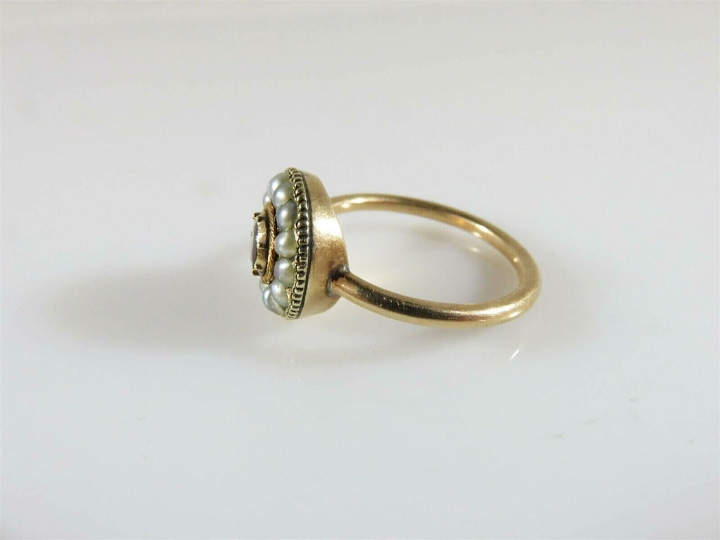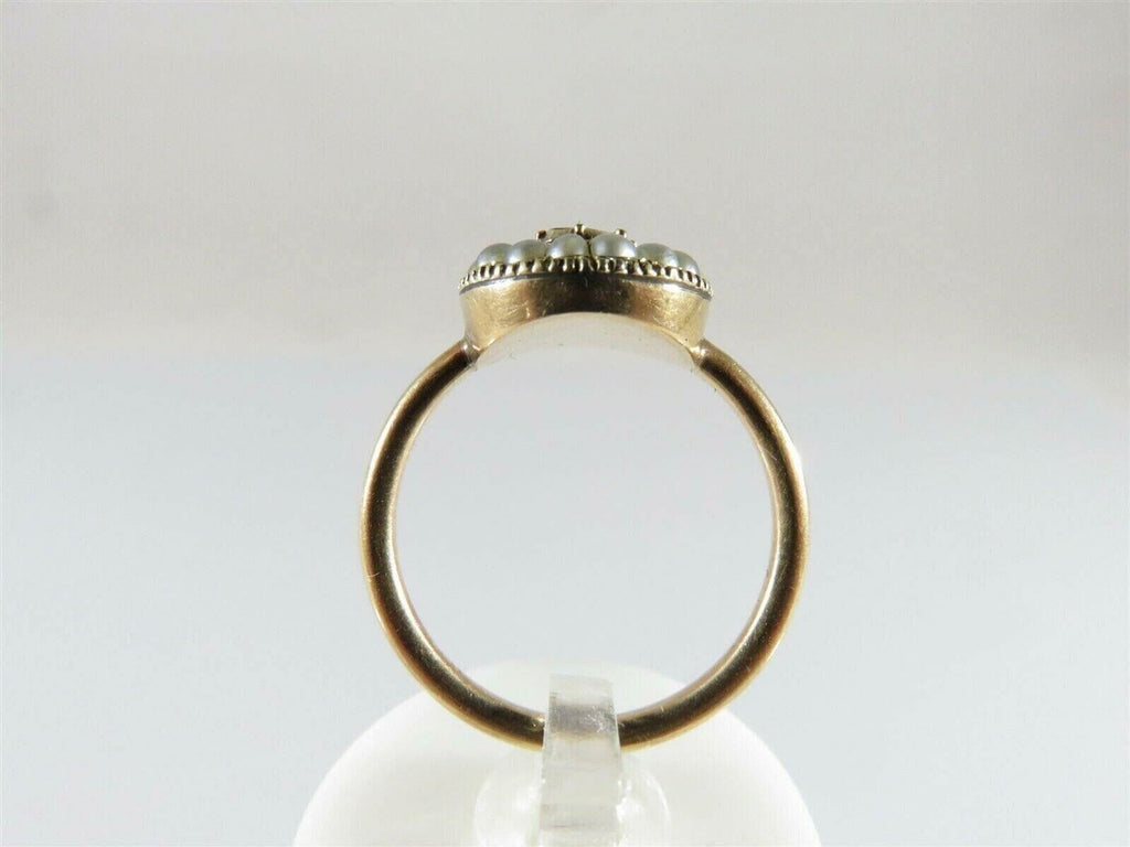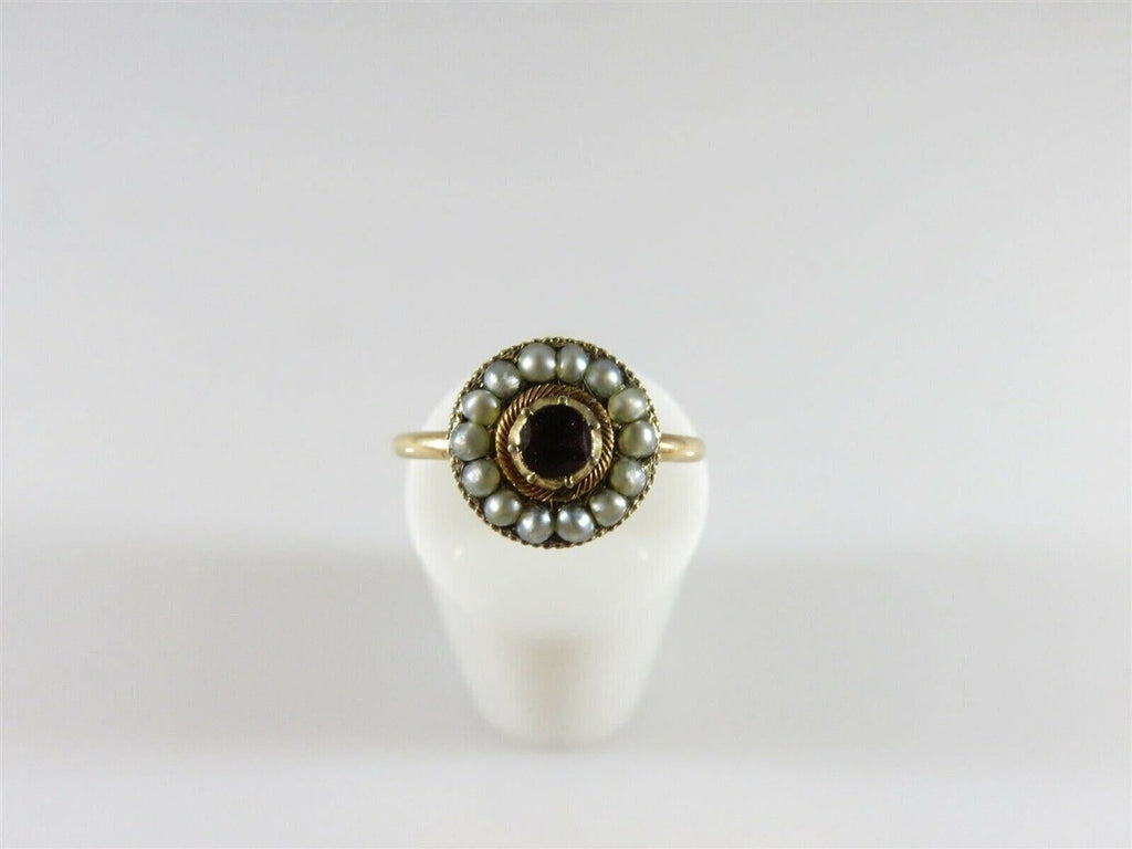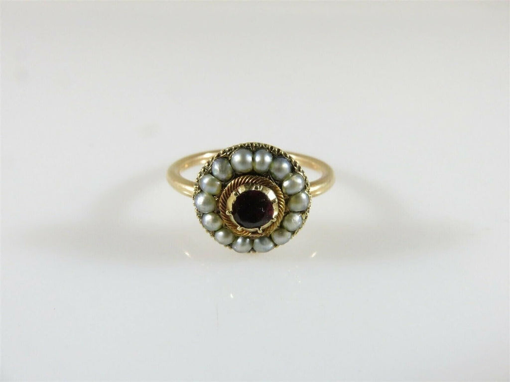 14K Rose Gold Georgian Flower Ring Table Cut Garnet Pearl Surround Size 5.5
