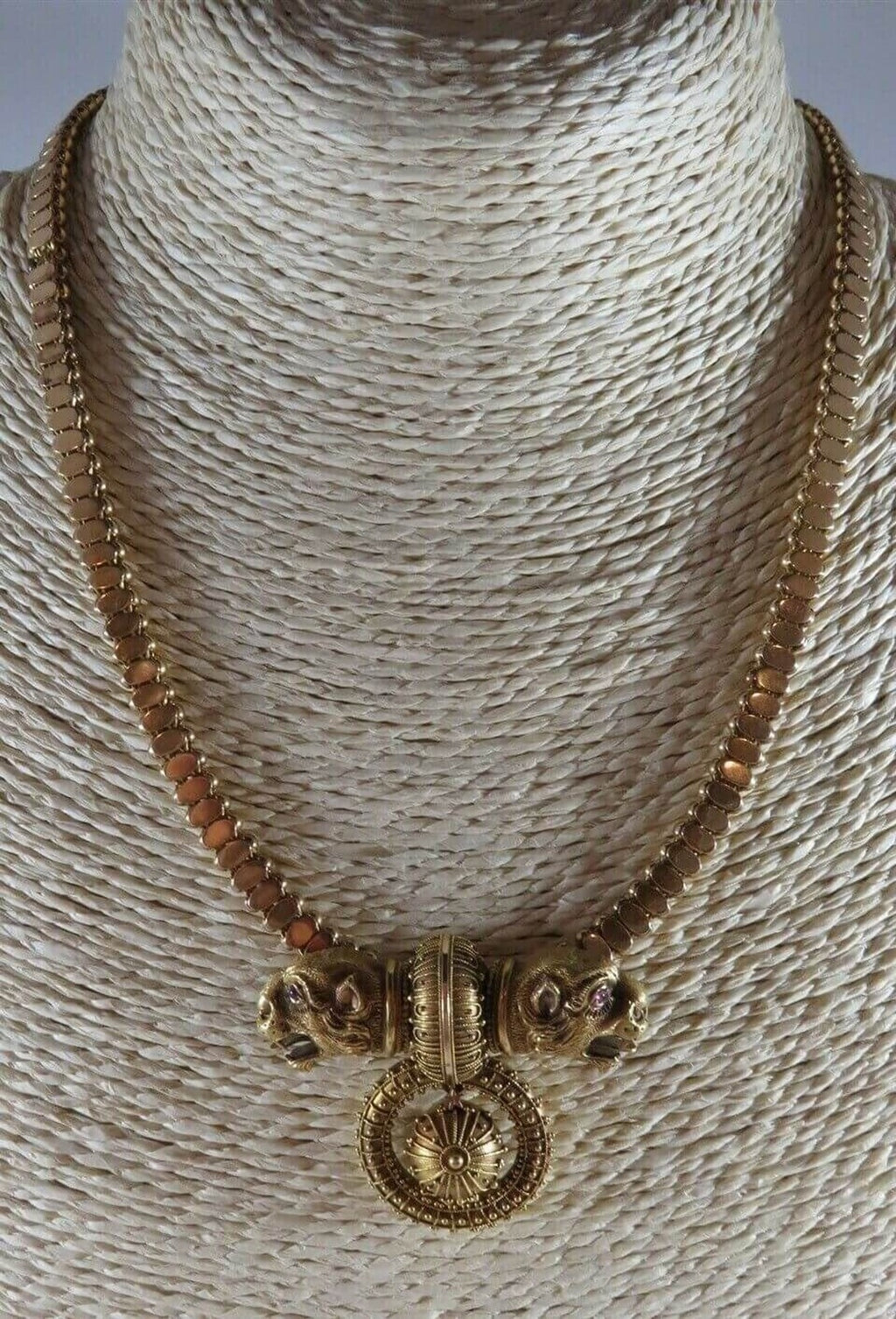 Double Griffin Head Brooch 22K Gold Milligrain over 14K Gold Victorian Brooch