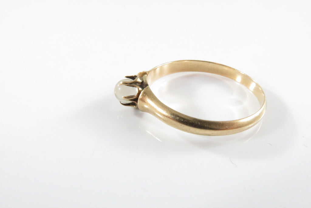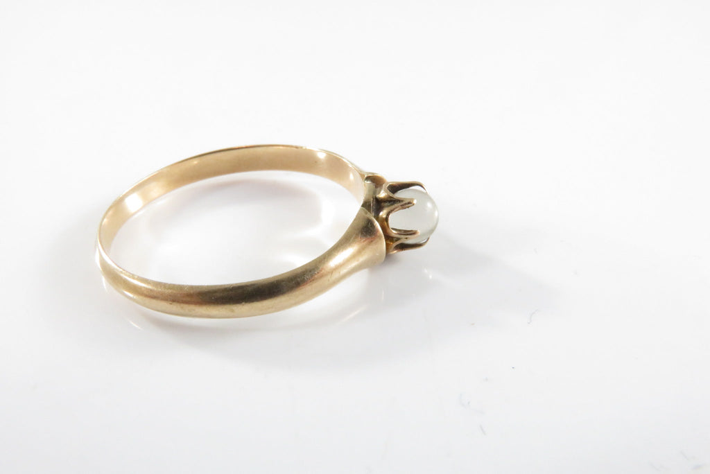 Antique Victorian Moonstone Solitaire Engagement Ring 10K Gold Size 7 1/2