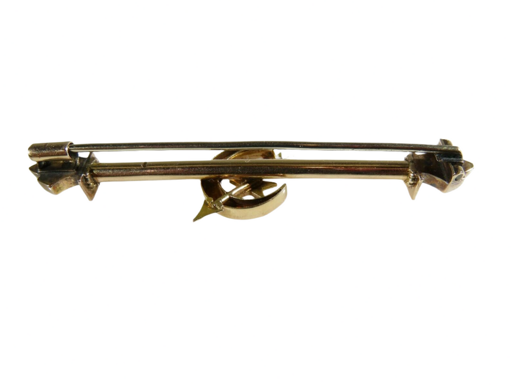 Victorian 10K Gold Crescent Moon Star & Arrow Brooch with Turquoise & Seed Pearl