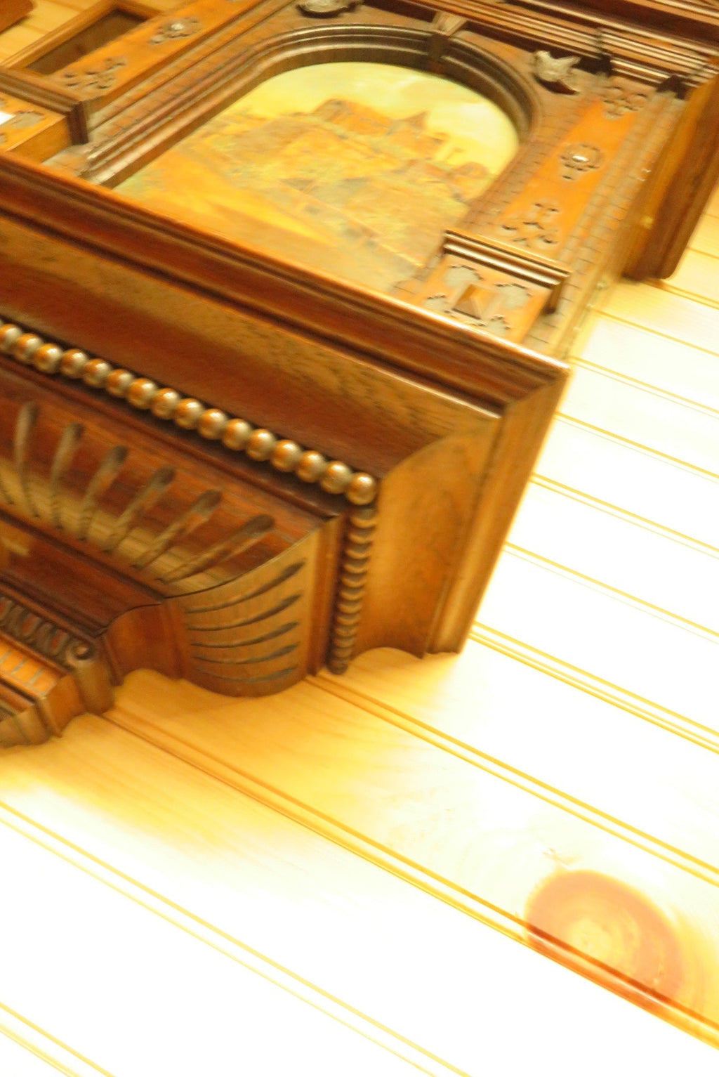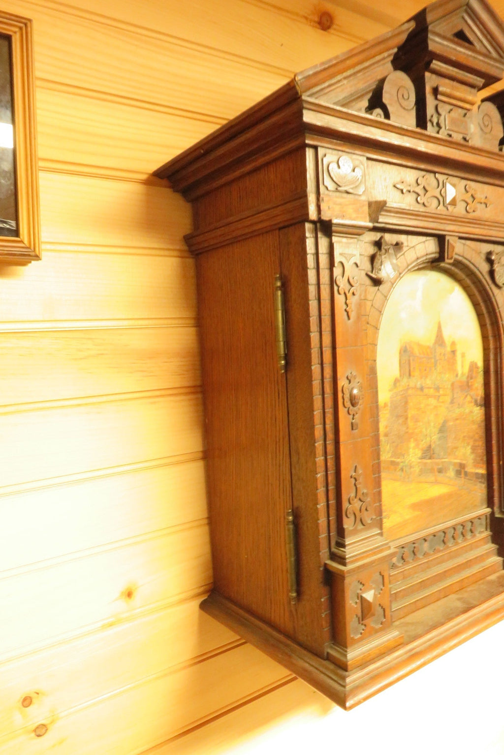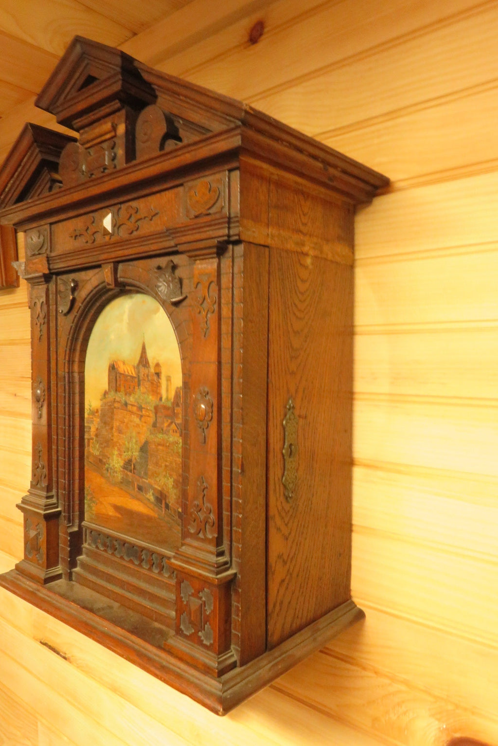 On Hold - Rare 1899 Johann Adelhard German Painted Marquetry Inlaid Cabinet Nurnberg Castle