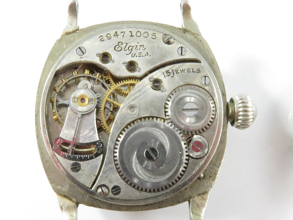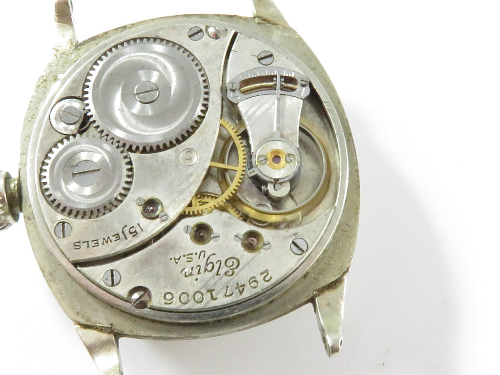 Art Deco Elgin Wristwatch 14K White Gold Filled Wadsworth Case 1927 15 Jewel