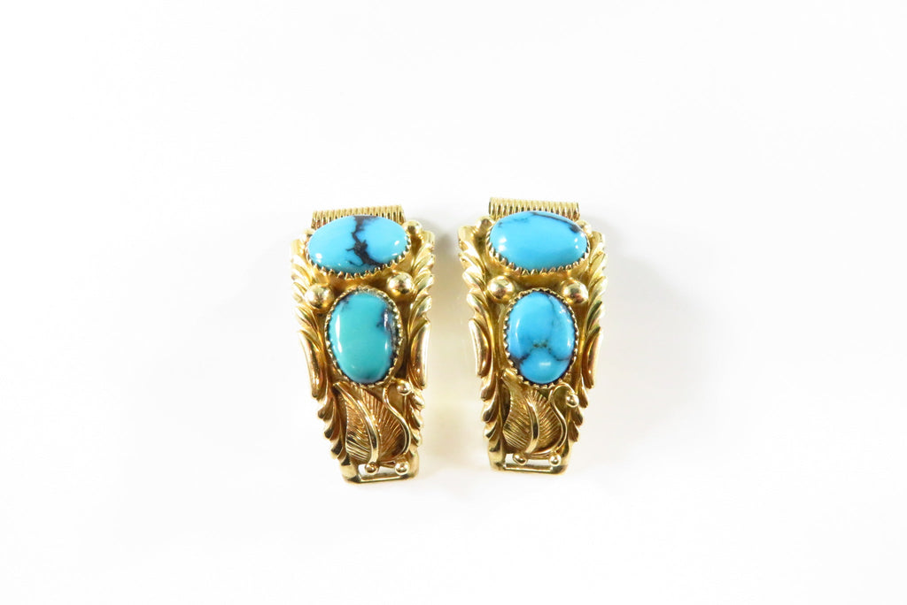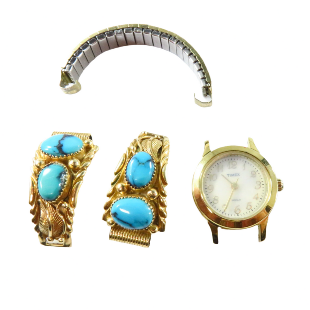 Navajo 14K Turquoise Watch Tips George & Nusie Henry Timex Quartz Watch
