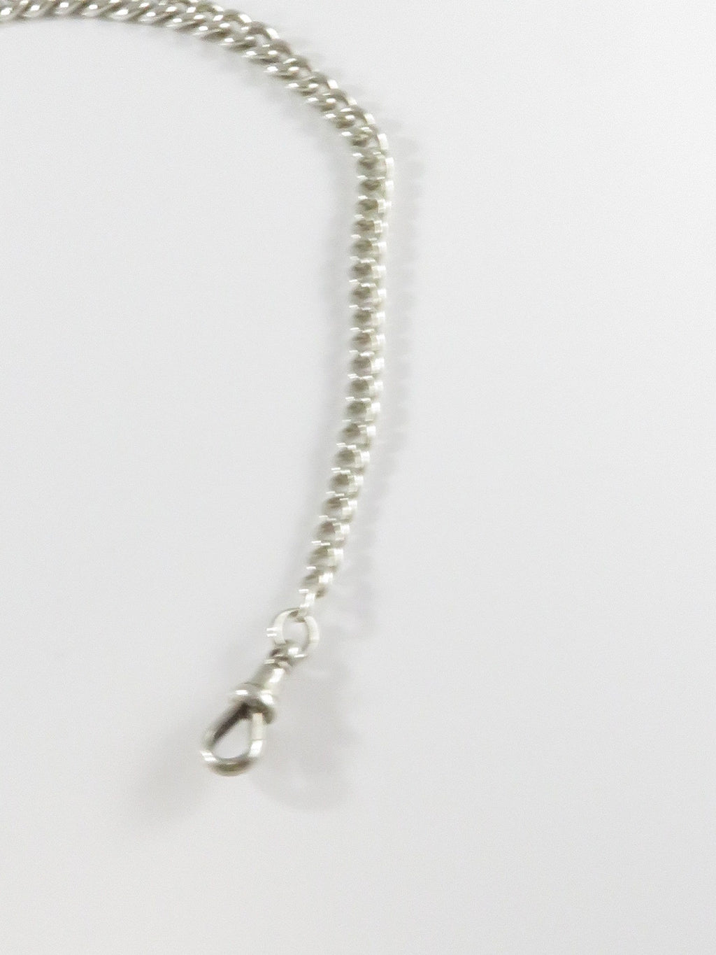 11 3/4" Sterling Silver Curb Link Heavy Duty Pocket Watch Chain with Fob Chain
