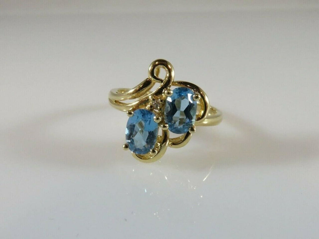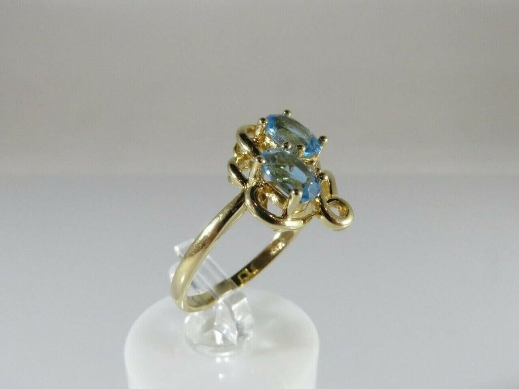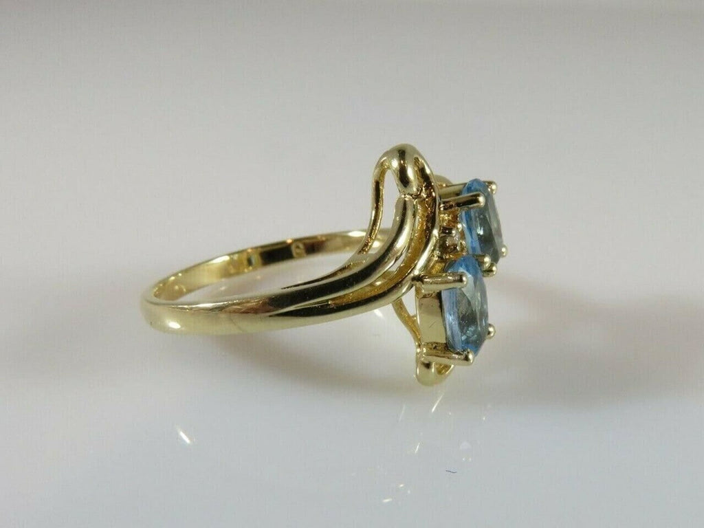 14K Yellow Gold Ring Size 6 3/4 with a Pair 6mm x 4mm Oval Cut Blue Topaz