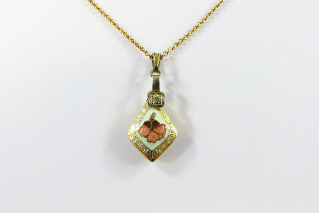 16 3/4" Gilded Chain with Gilded Enameled Flower Pendant