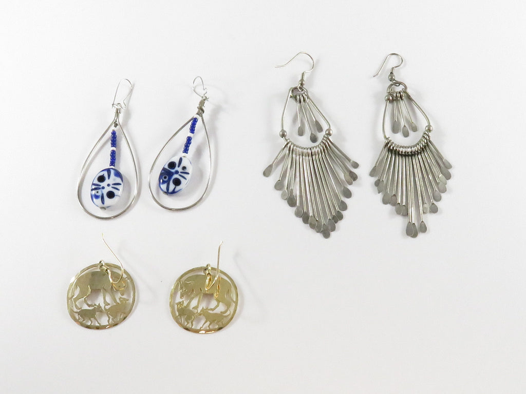 Grouping of 3 Pairs Costume Earrings Ear Wire Chandelier Wild Bryde Artisan Boho
