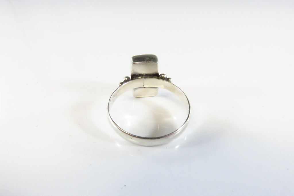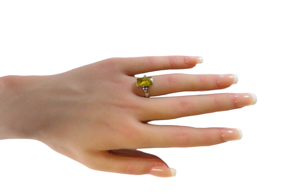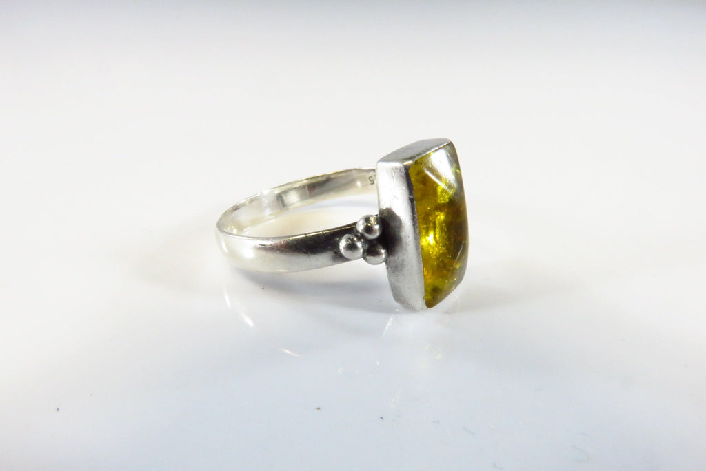 Honey Yellow Amber Rectangular Sugar Loaf Sterling Silver Ring Size 6.75