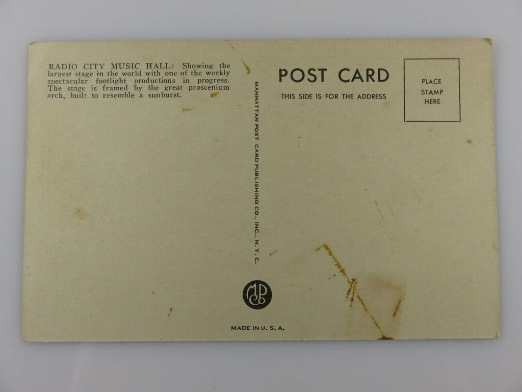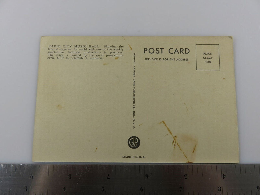 Radio City Music Hall Manhattan Post Card Publishing Circa 1940's Unused Linen P