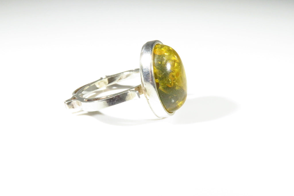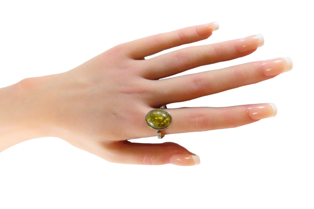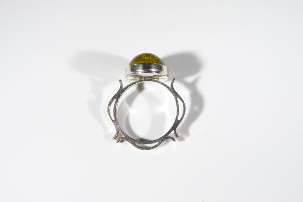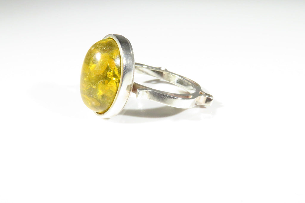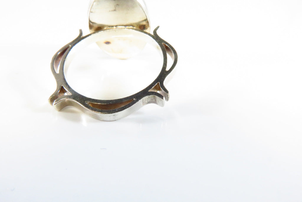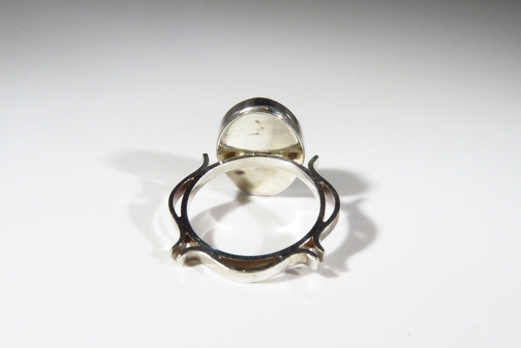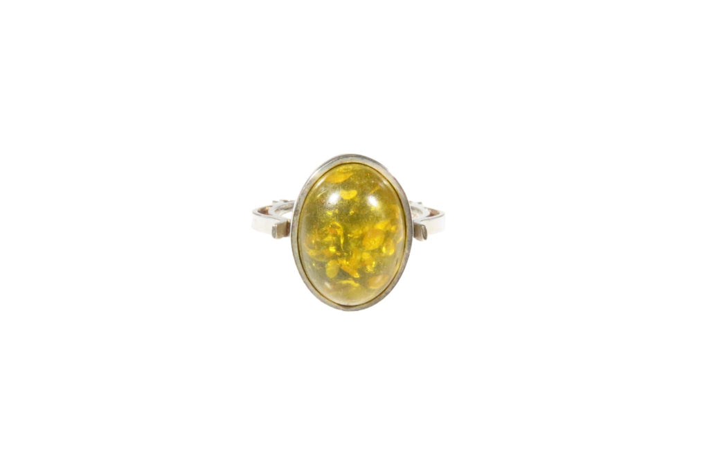 Vintage Yellow Amber Ring Oval Plaque Style Fancy Setting Design Sz 8
