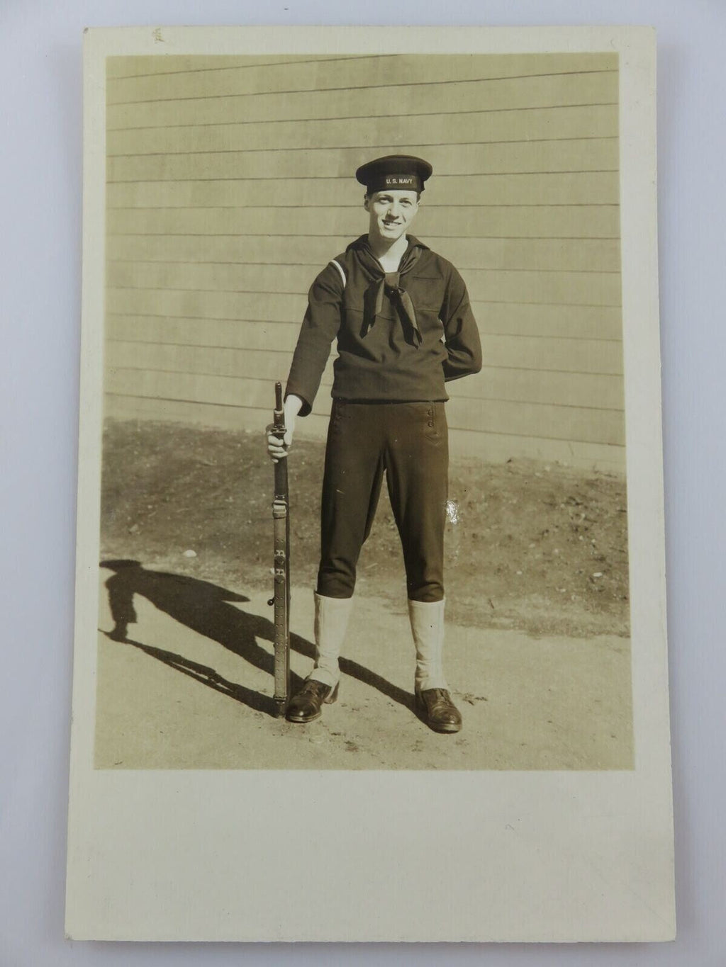 WW1 Era U.S. Navy Soldier With Rifle Photo Postcard Unused Postcard